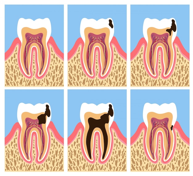 Вы увидите, что по мере прогрессирования кариеса поражается все больше и больше тканей зуба.