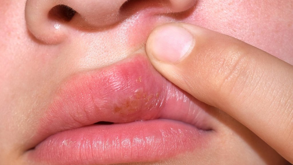 Герпес представляет собой заполненные жидкостью язвы, которые локализуются на губах или вокруг них. Герпес на деснах и верхней челюсти тоже бывает, но очень редко. Герпес на губах сначала выглядит как пузырьки, заполненные жидкостью, а затем на нем образуется корочка или болячка. Перед появлением герпеса часто ощущается зуд, покалывание или чувство жжения на губе.