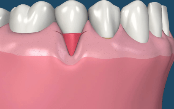 Опущение десен — это состояние, при котором десны отходят от поверхности зуба, обнажая корневую поверхность зубов.